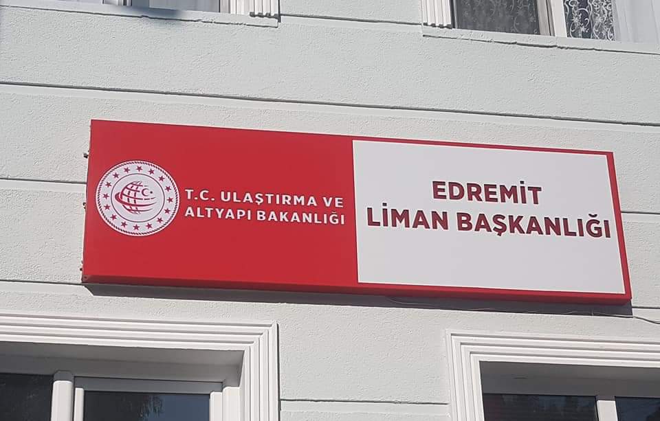 Işıklı kompozit oyma tabela çalışması Edremit Liman Başkanlığı'na montajı yapılarak teslim edilmiştir.